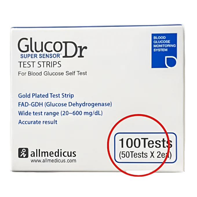 شرائط قياس السكر جلوكو دكتور سوبر سينسور GlucoDr Super Sensor علبة 100شريط